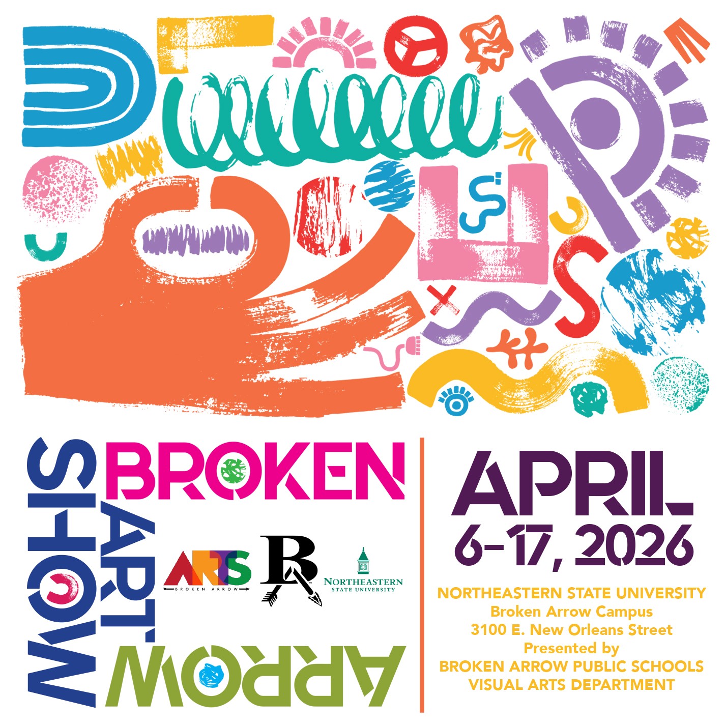 Our classes have been busy working on art projects to be displayed at the annual Broken Arrow art show, which will take place April 6-17 at NSU BA. See the flyer below and be sure to visit the art show! |